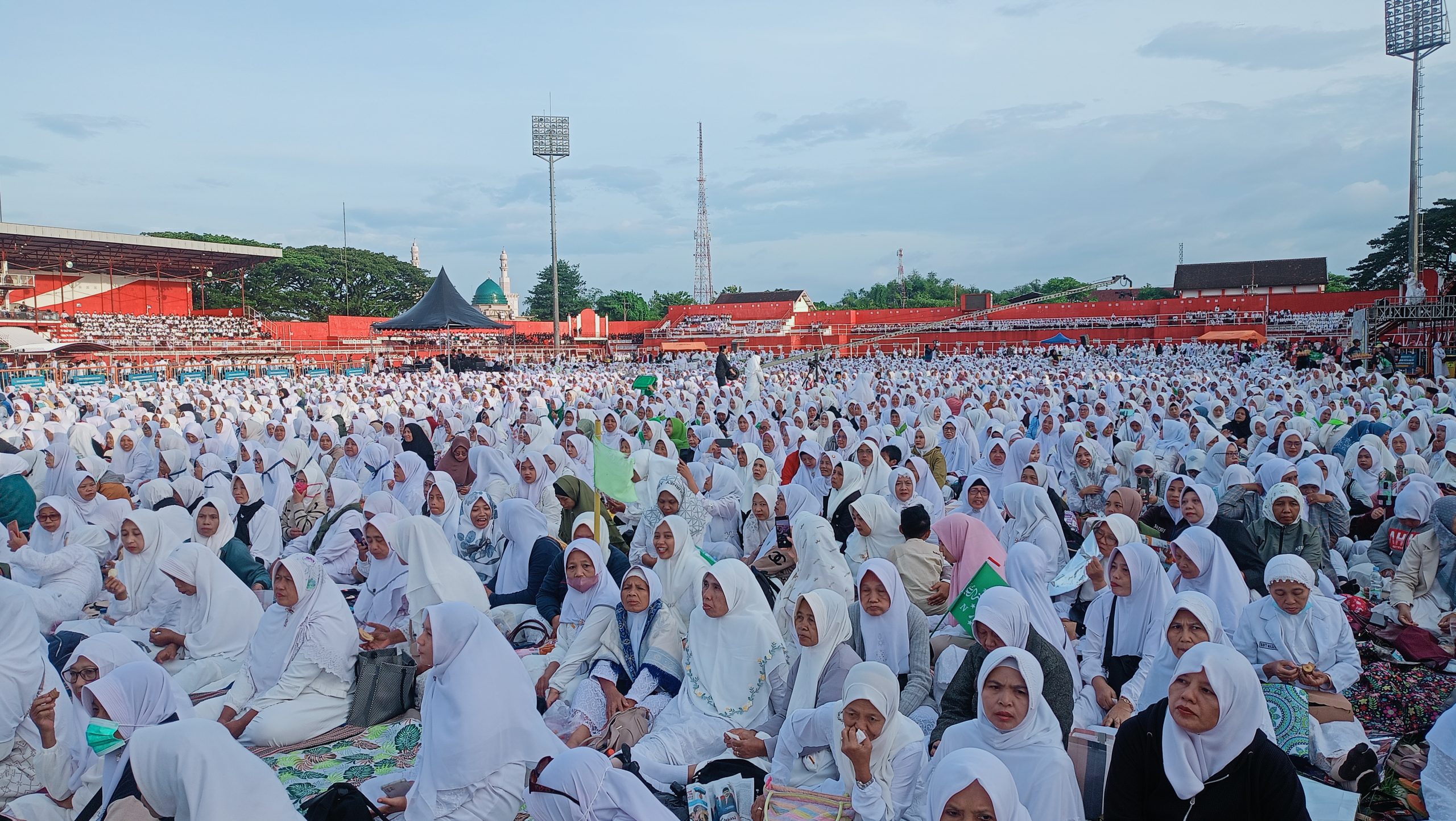 Sejak pukul 07.00 WIB, area stadion telah dipenuhi lautan jamaah. Suasana terasa khidmat, penuh ketundukan dan kekhusyukan. Doa bersama dimulai sekitar pukul 08.30 WIB, dipimpin oleh sembilan kiai sepuh kharismatik dari Kota dan Kabupaten Blitar yang dikenal sebagai tokoh sentral Nahdlatul Ulama.